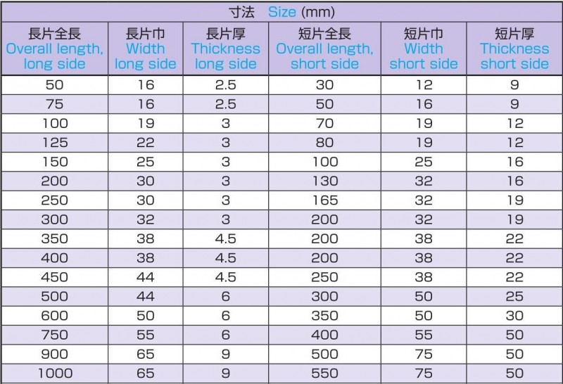 直角度:1級 ±(10+L/20)μm L=呼寸法